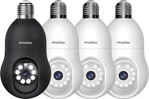 LaView 4MP Bulb Security Camera 4Pcs 2.4GHz,360° 2K Security Cameras Wireless Outdoor Indoor Full Color Day and Night, Motion Detection, Audible Alarm, Easy Installation, Compatible with Alexa