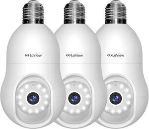 LaView 4MP Bulb Security Camera 3Pcs 2.4GHz,360° 2K Security Cameras Wireless Outdoor Indoor Full Color Day and Night, Motion Detection, Audible Alarm, Easy Installation, Compatible with Alexa