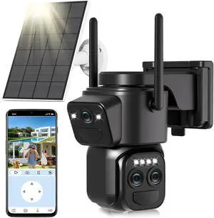 Triple-Lens Solar Security Cameras Wireless Outdoor, 2.4G/5G WiFi Cameras for Home Security with 10X Zoom, Full Color Night Vision, PlR Human Detection, Auto Tracking, Spotlight Siren, Alexa, IP66