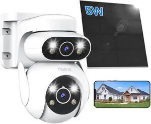 Noorio Solar Security Camera Wireless Outdoor Dual Lens, 2.4G WiFi Solar Powered Camera, 360°PTZ View, 24/7 Recording, 2K Color Night Vision (Download Plus APP)