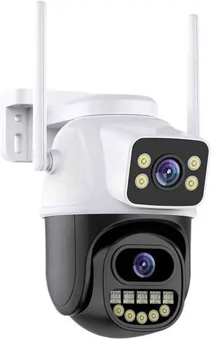 Dual Lens WiFi Surveillance Camera, 4X Digital Zoom, 4K 8MP AI Human Detect, Outdoor Security PTZ IP Cameras(EU Plug,8MP NO Card)