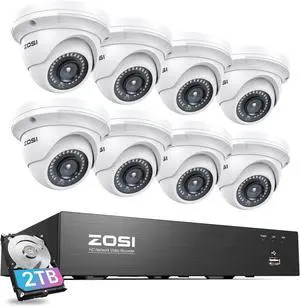 ZOSI 8CH 4K PoE Home Security System with 2TB HDD, 8pcs 3K 5MP Weatherproof Outdoor Indoor PoE Cameras, Night Vision, Motion Detection, Remote Access, 8MP Surveillance NVR for 24/7 Recording