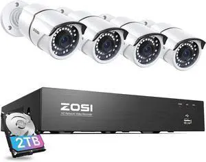 ZOSI 4K PoE Home Security Camera System, 4pcs 5MP Wired Outdoor Indoor Cameras, 120ft Night Vision, Motion Alert, H.265+ 8 Channel 8MP NVR with 2TB Hard Drive, Remote Access for 24/7 Surveillance