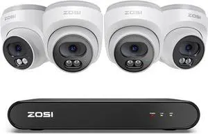 ZOSI C220 8CH 4MP QHD 2.5K PoE Home Security Camera System, 8CH 5MP 3K NVR with Smart AI Human Detection, 4 x 4MP(1440p) Dome IP Cameras Outdoor Indoor, Two-Way Audio (Hard Drive not Included)