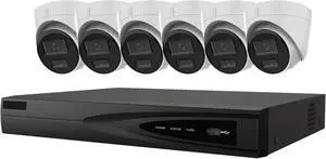 8 Channel Security Camera System, EKI-K82T46H 4K Value Express Kits, 8MP NVR 2TB with 6 x 4MP Smart Hybrid Light Turret Dome Cameras 2.8mm with Mic H.265+, Human/Vehicle Detection, Cable not Included
