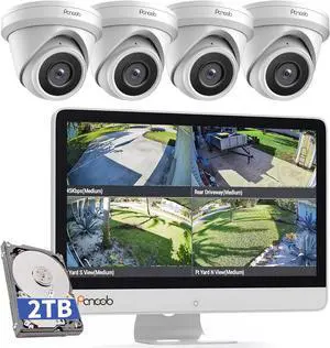 Security Camera System with Monitor, 8CH 8MP NVR with 2TB HDD, 6Pcs IR Dome Wired 5MP PoE IP Camera IP67 Outdoor, Night Vision, Smart AI Human Detection, PD93AM06-5M