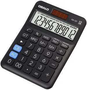 Pocket Small Size Desk Calculator, 12 Digit Large LCD Display, Basic Tax Function Handheld Desktop Calculator with Solar Battery Dual Power, Perfect for Office, School, Business OS-12T (Black)