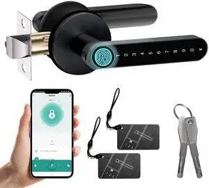 Fingerprint Door Lock, Door Locks for Bedrooms, Biometric Door Lock with Fingerprint/Password/Key/IC Card-Smart Door Lock for Home, Hotel, Office, Apartment-Black