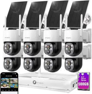 xmartO Wireless Solar PTZ Security Camera System, 8-Cam Bundle, 4MP QHD, 4K 10CH Expandable WiFi NVR, All-Weather Solar Charge, Two-Way Audio, PIR Sensor, No Monthly Fee, 500GB