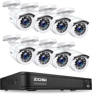 ZOSI 1080p H.265+ Security Camera System for Home, 5MP Lite 8 Channel CCTV DVR and 8 x 1080p Weatherproof Bullet Cameras Outdoor Indoor with 120ft Night Vision and 105°Wide Angle (No HDD Included)