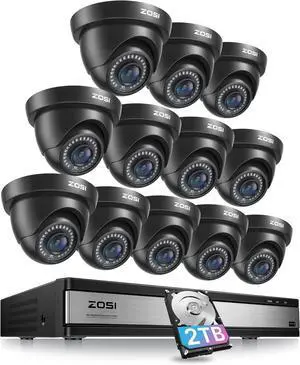 ZOSI 16 Channel Security Camera System 1080p, 2MP H.265+ Hybrid 16CH DVR with AI Human Vehicle Detect, 12 x 1080p CCTV Dome Camera Outdoor, 80ft Night Vision, 90° View Angle, Remote Access, 2TB HDD