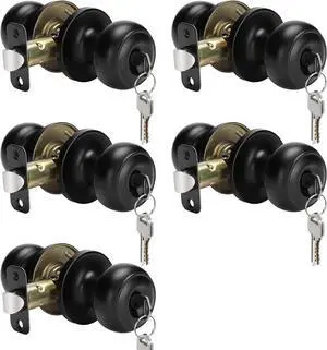 Haidms 5 Pack Matte Black Door Knobs with Lock and Key, Keyed Alike Keyed Entry Door Knobs Exterior, Black Doorknobs for Bedroom