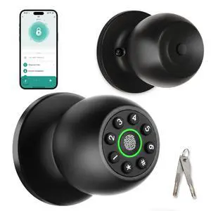 Smart Fingerprint Door Knob with Keypad, Fingerprint Door Lock, Keyless Entry Door Lock, Biometric Door knobs with App Control, Door Knob with Lock for Bedroom, Garage, Home & Office