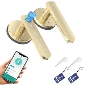 5-in-1 Smart Fingerprint Door Lock,Keyless Entry Digital Knob, Bluetooth App Control, Card and Key, Biometric Door Knob with Handle, Easy to Install for Exterior, Interior, Bedroom Doors