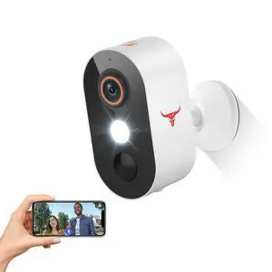 ByteBlaz Wireless Outdoor Security Camera with Spotlights, Battery Powered, AI Human Detection, 2-Way Talk, Color Night Vision, Cloud Storage, 2.4G WiFi