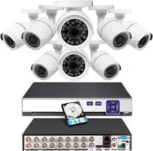 16 Channel Security Recorder DVR System H.265+ Surveillance DVR Recorder with 8pcs Surveillance Camera 24/7 Recording,Remote Access Pre-Installed 2TB Hard Drive
