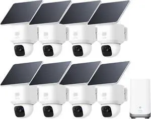 eufy Security SoloCam E30, 8-Cam Pack Kit, Security Cameras Wireless Outdoor, Solar Camera Outdoor Wireless, 360° Pan, AI Tracking, 2K Clarity, No Monthly Fee