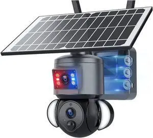 4K 8MP Solar Camera 4G SIM/WiFi Security Outdoor Dual Lens Recording Humanoid Tracking Color Night Vision PTZ Cam(8MP WiFi add 64GB)