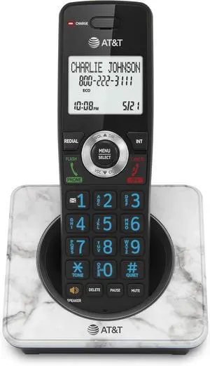 AT&T GL2101-1M DECT 6.0 Cordless Home Phone with Call Block, Caller ID, Full-Duplex Handset Speakerphone, 2" White Backlit Display, Lighted Keypad (Marble)