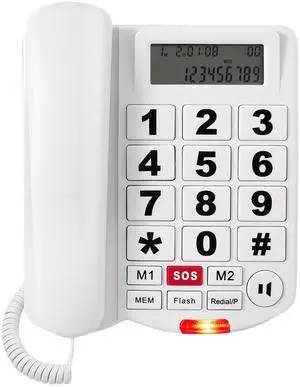 Big Button Phone For Seniors With Speaker, Landline Phones For Home With Caller Id, Corded Phone With SOS Speed Dial, 110db+ Extra Loud Ringer & Visual Alert For Elderly With Hearing Visually Impaired