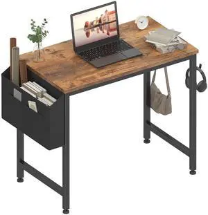 Computer Desk 31 Inch Home Office Desks for Small Spaces, Gaming Writing Study Work Table with Storage Bag for Bedroom, Rustic Brown