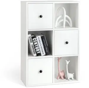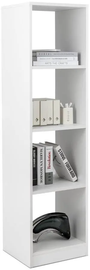 Giantex 56" Tall 4 Cube Bookcase White - Freestanding 15" Wide 5-Tier Narrow Open Display Bookshelf with 4 Anti-Tipping Kits, Wooden Cube Storage Organizer for Small Place, Living Room, Bedroom