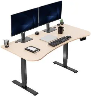 VIVO Electric 63 x 32 Stand Up Desk, Light Wood Table Top, Black Frame