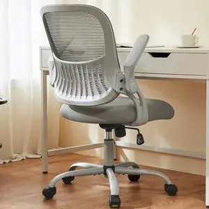 Office Chair, Mesh Ergonomic Office Chair with Lumbar Support, Comfy Computer Desk Chair with Flip Armrest Rolling Wheels for Home Study Room Office, White & Gray