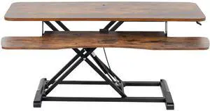 VIVO Vintage Brown Height Adjustable 36" Standing Desk Monitor Riser Black Frame