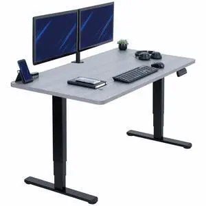 VIVO Electric 60x24 Stand Up Desk, Dark Gray Table Top, White Frame