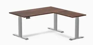 Desky Hardwood L-Shape Sit Stand Desk - White Oak / 60 x 30 x 62 x 20 in / Gray