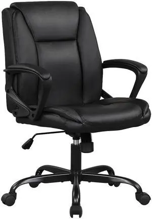Home Office Chair Ergonomic Desk Chair PU Leather Task Chair Executive Rolling Swivel Mid Back Computer Chair with Lumbar Support Armrest Adjustable Chair for Men (Black)