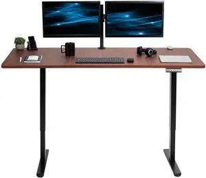 VIVO Electric Dual Motor 71 x 30 Standing Desk, Dark Walnut Top, Black Frame