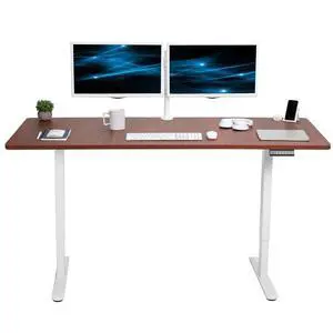 VIVO Electric Dual Motor 71 x 30 Standing Desk, Dark Walnut Top, White Frame