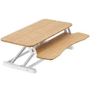 VIVO Light Wood Height Adjustable 36" Standing Desk Monitor Riser, White Frame