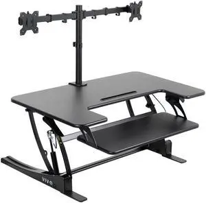 VIVO Black Electric 36" Standing Desk Monitor Riser, Dual Arm Sit Stand Tabletop