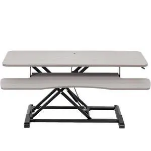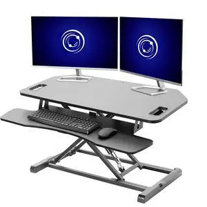 VIVO Gray 32" Standing Desk Riser with Adjustable Dual 13" to 30" Monitor Mount