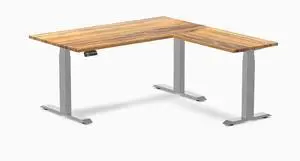 Desky Hardwood L-Shape Sit Stand Desk - Teak / 60 x 30 x 62 x 20 in / Gray- Type: Desk