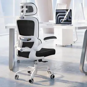 TRALT Ergonomic Office Chair - Desk Chair with Adjustable Headrest Lumbar Support Computer Chair - Mesh Comfy Chair with Flip-up Armrests - Gaming Chairs for Adults Home Office (Leather, White)