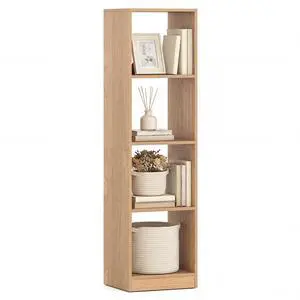 Giantex 56" Tall 4 Cube Bookcase, Natural Freestanding 15" Wide 5-Tier Narrow Open Display Bookshelf w/ 4 Anti-Tipping Kits, Wooden Cube Storage Organizer for Small Place, Living Room, Bedroom