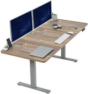 VIVO Electric 63 x 32 Stand Up Desk, Vintage Brown Table Top, Gray Frame