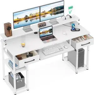 Mobile High Printer Stand with Power Outlet Charging Plugs USB Port Office Storage Shelf Includes Computer Tower CPU Stand Holder with Wheel ( Brown)