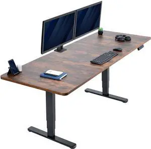 VIVO Electric 83 x 30 Stand Up Desk Workstation, Vintage Brown Table Top, Black Frame
