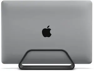 Vertical Laptop Stand Compatible with MacBook Pro and MacBook Air, Holder for Personal Computer Desk Stand, Aluminium, Exchangeable Inserts to Fit Different Device Models, Black