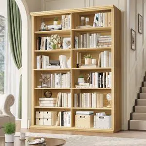 Rresyet 71.8" L *47.2W Wooden Bookcase and Bookshelf Extra Large Bookshelf with Double Storage, Elegant Design for Living Room, Office, and Apartment (Brown)