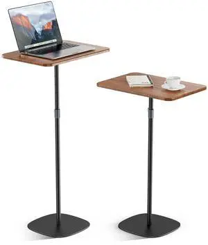 POLESTO Portable Laptop Floor Stand, Bedside/Sofa Table with Height Adjustable 18''~48'', Sleek Wooden Lectern Standing Desk Mobile Podium for Home, Office, School, Black