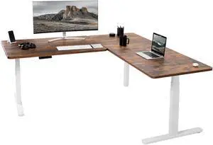 VIVO Electric 77" x 71" Corner Desk, Rustic Vintage Brown Tabletops, White Frame