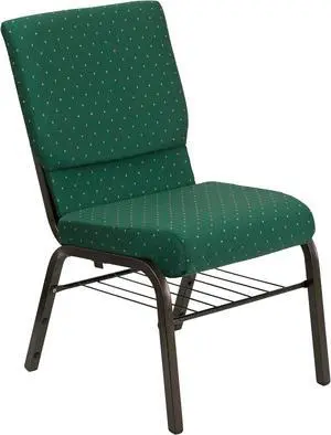 HERCULES Series 21''W Stacking Church Chair in Hunter Green Dot Patterned Fabric - Gold Vein Frame