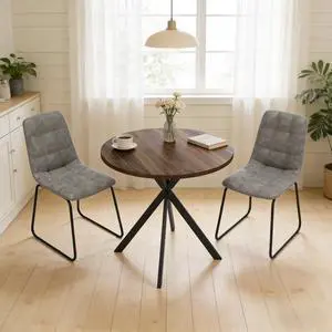 31.5" Round Dining Table and Chairs for 2, Mid Century Modern Round Table Set, Space Saving for Apartment Kitchen Dining Room Walnut Table + Dark Gray Chairs