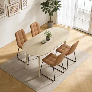 63 Inch Dining Table Set for 4 / 6,Modern Wood Dining Table,Leather Dining Chairs 4 / 6,Table and Chairs Set of 4 / 6,Ideal for Kitchen Dining Room